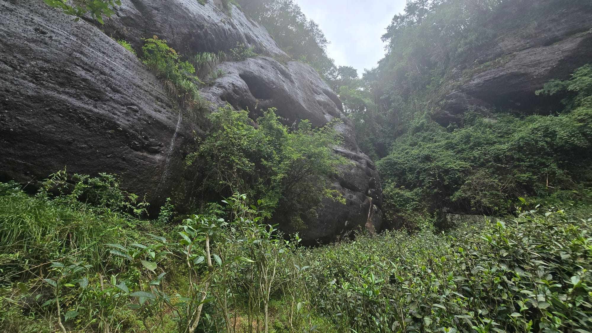 Wuyi is known for its unique topography, a tiny area of land laden with small peaks, deep valleys, overhanging rock faces, and a large central river fed by a mix of continuous springs and seasonal rain water cascading down the rock faces. It is said that the water flowing over the rocks and into the valleys carry the nutrients which give yancha (good yancha) it's 岩韵 (yanyun, "rock charm").