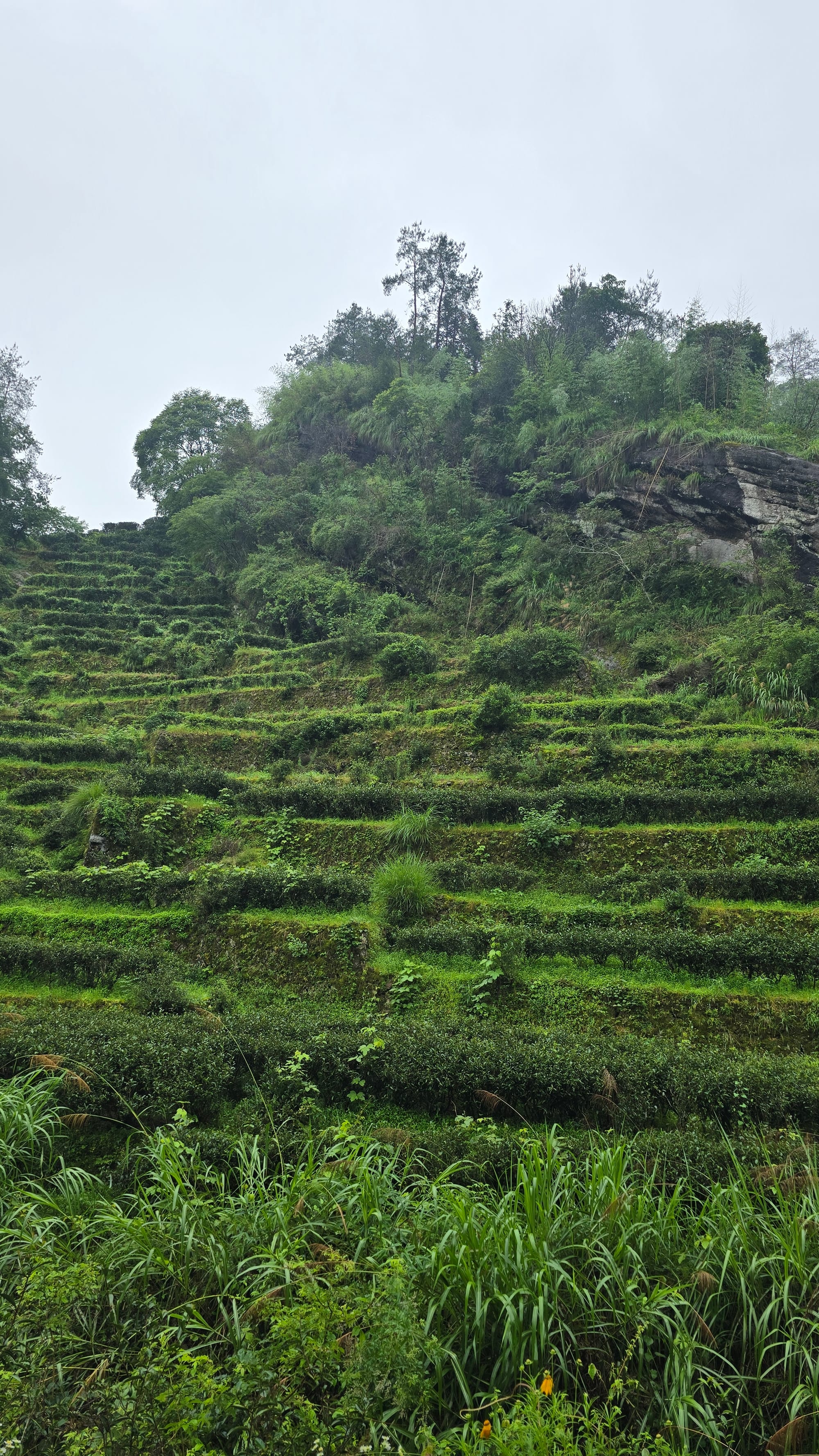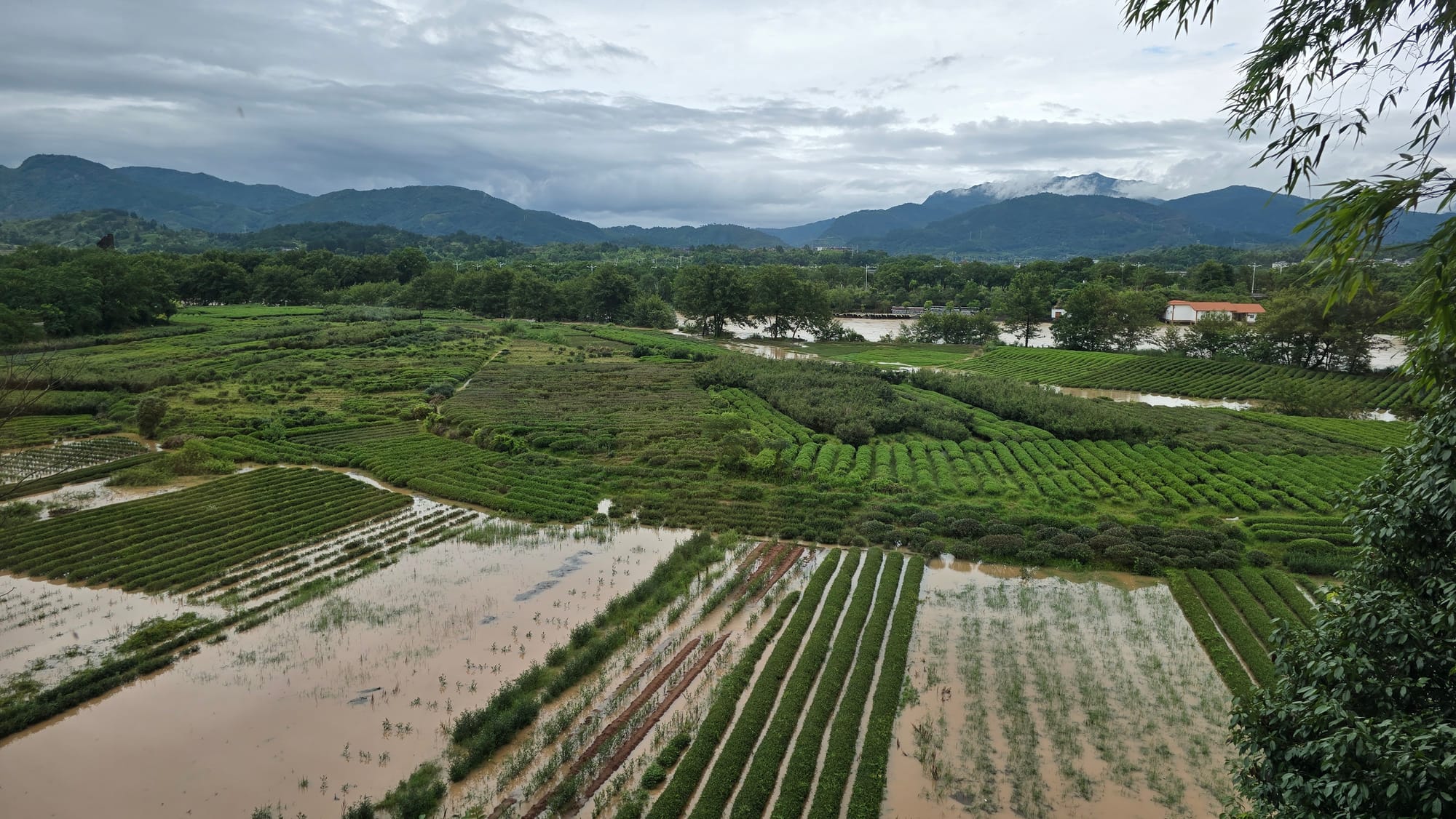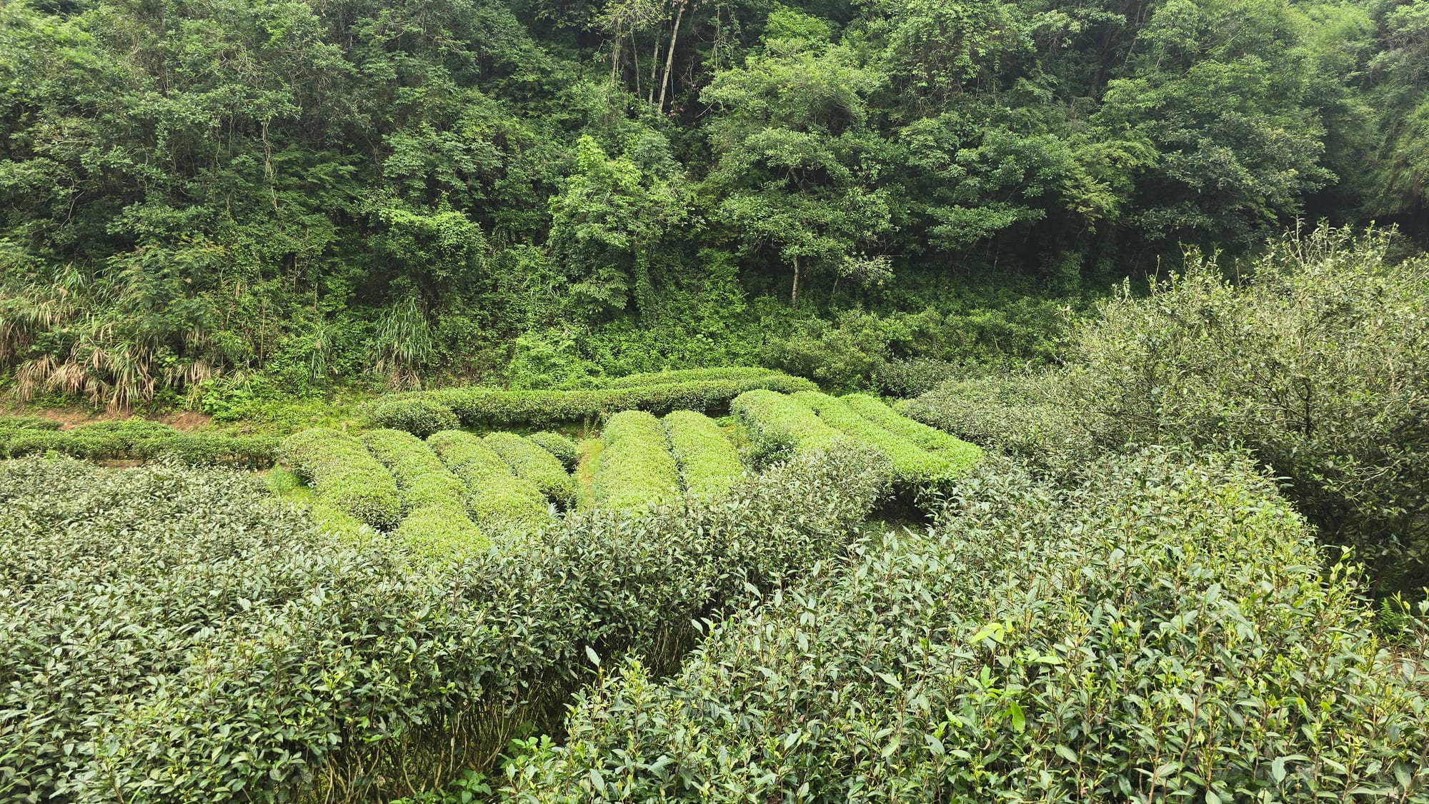 These two tea gardens, both inside the park, are only a few hundred meters away from each other. On the left is a Jian, growing higher quality tea, on the right a flooded river plain growing lower quality tea.