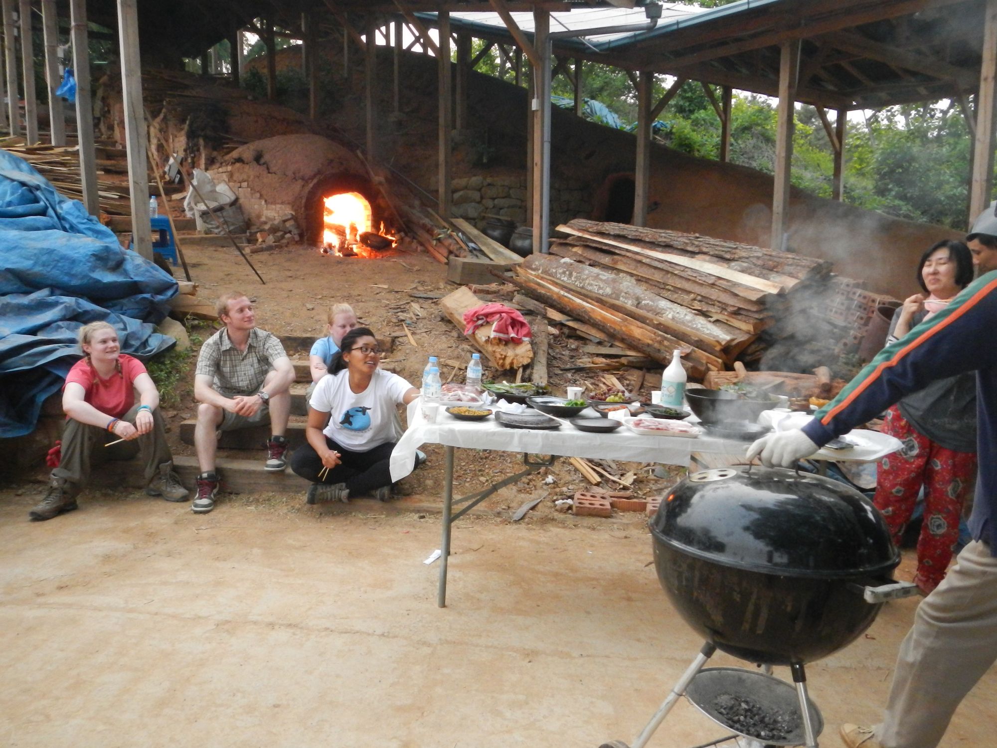 After dinner the boys and the “kiln crew” which consisted of Mr An and two of his friends, went back to work. They broke wood and shoved it continuously into the fire, until finally it was time to seal the kiln for the night. It was just incredible to be able to see something from start to finish. It gave us a greater appreciation for the pottery and all the work that goes into it. We thought molding the clay into objects was hard, but the kiln is a whole other art form in itself. At least when we were molding the worst that could happen was that it looked awful! Messing up when it comes to the kiln…well that I the reason I thought it best to let the pros handle the flame. But it really was fantastic to able to witness firsthand the firing of our pottery. Signing off with an even greater appreciation for pottery than after my first post, and no charred body parts.