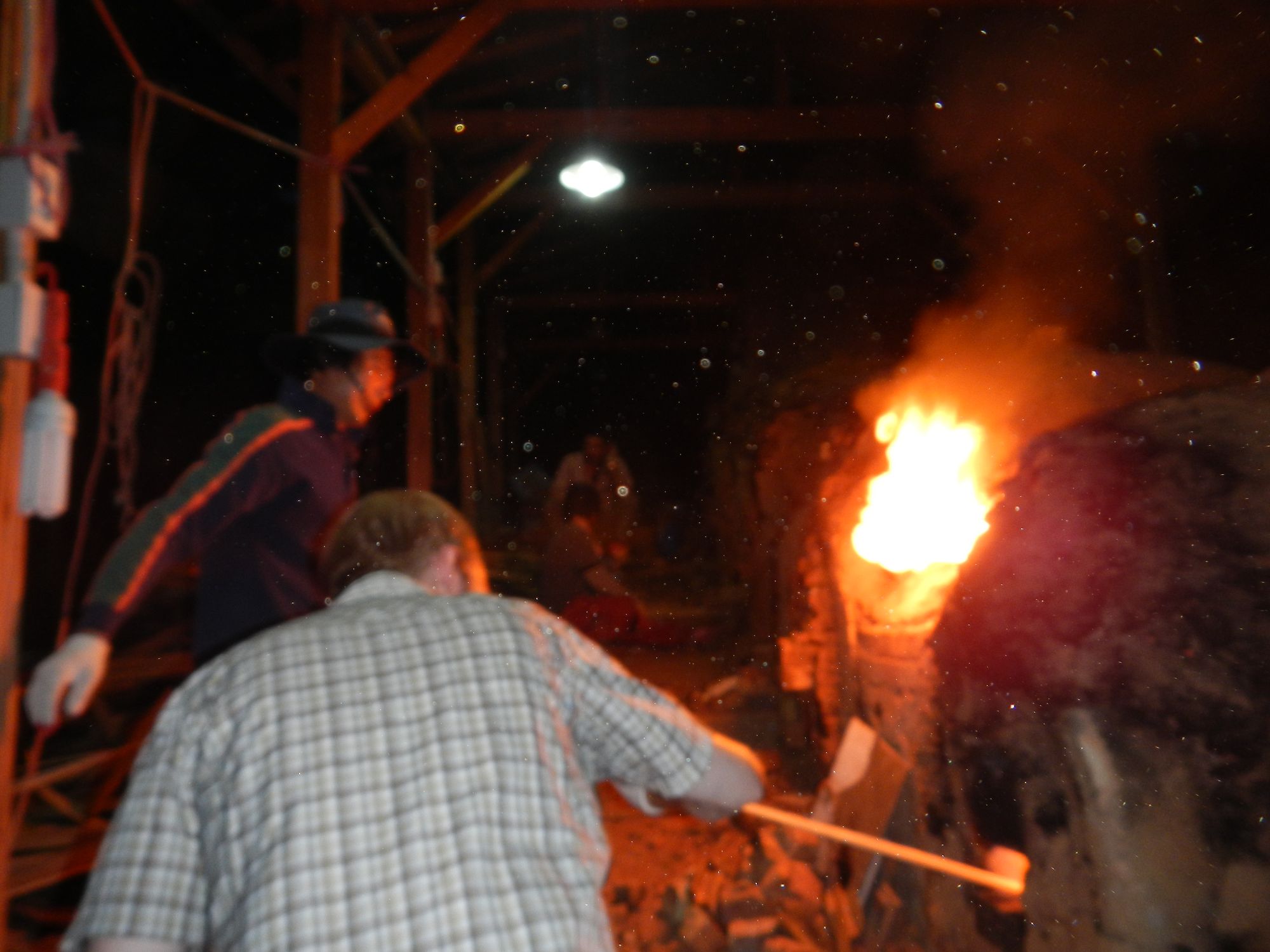 I have to be honest and admit that my physical participation in this process was limited to just tossing a log in the kiln, but Pat an Jason were able to take a more active role. Not only did they tend to the main fire in the kiln with Mr An but they also helped assist in the fueling of the individual portals of the kiln. When removing a brick in order to be able to access the different section of the kiln, the bricks were glowing with heat. It was incredible, and at the same time a perfect indication that this klutz should probably stick to her observatory role. One of the cooler parts was when we were actually able to see a fellow Institute member’s elephant tea pot actually in the flame. It was beautiful.