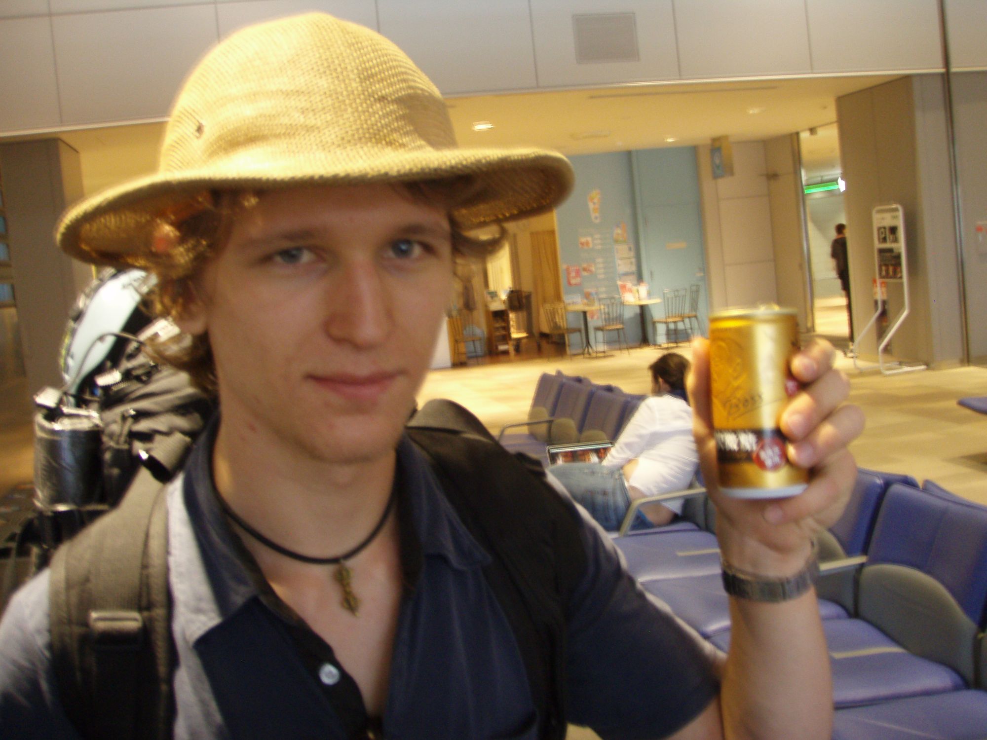 David and I arrive in the Tokyo airport and I celebrate with a drink suggested to me by Pat (of the Tea Institute):
