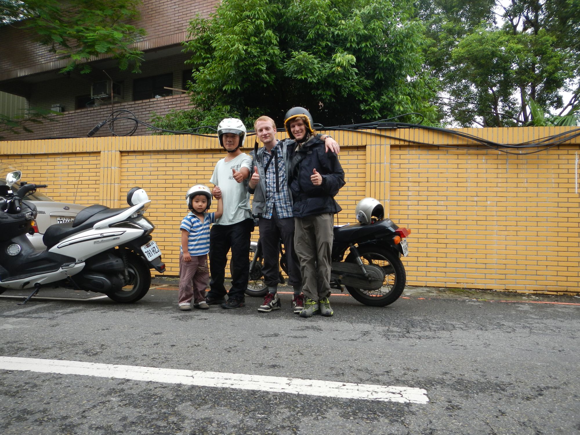 Sometimes, people for no reason but to be helpful and kind, go far out of their way to help others; this is one of those times. As I alluded to in this post, Pat and I got (very) lost on the small section of our ride from Banciao to SanXia, before the mountains ever started. To be fair, that was the trickiest part of our directions (in Chinese) because we had to get on and off and back on to 3 exits / on ramps in a row underneath the actual highway (motorcycles aren’t allowed on the actual raised freeways). We never would have found it without help. And help we had.